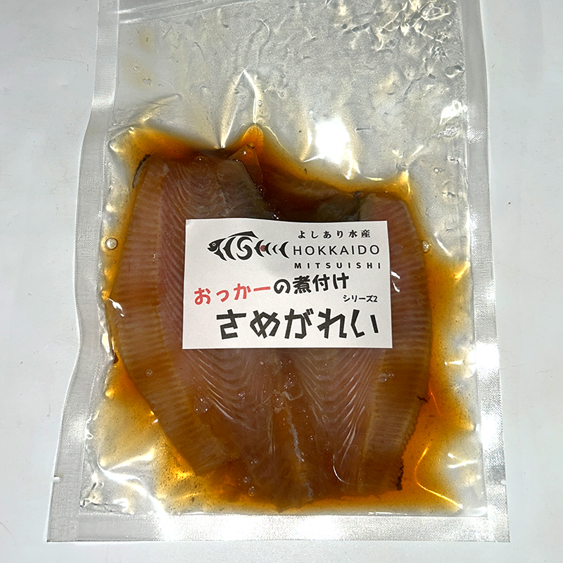 北海道・三石で水揚げされたさめがれいを、やさしい甘みのある味付けで丁寧に煮付けました。